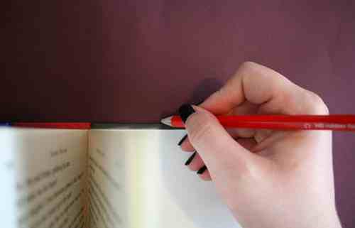1. Lay your chosen book flat - really flat, including the spine to ensure a good measurement, onto your paper. Lay the book as close to an edge of the paper, leaving at least two inches on either side of the book to leave enough paper to fold.
